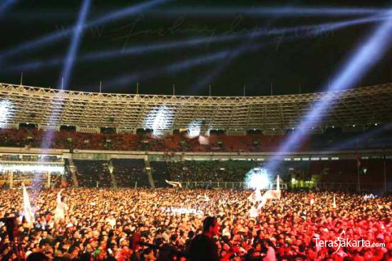 Para macan tua yang digawangi Iwan Fals, Setiawan Djody dan Sawung Jabo di Stadion Gelora Bung Karno, Jakarta,