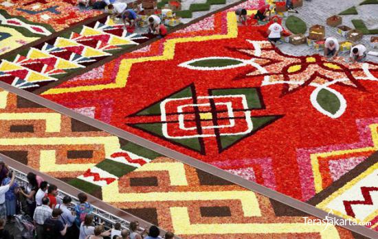 Belgia sedang memperingati peristiwa tahunan "La Fete De La Fleur" atau pesta bunga di bulan Agustus. Ahli bunga merancang karpet raksasa dari bunga di depan Grand Place di Brussel. Karpet ini dibuat menggunakan 700 ribu bunga.