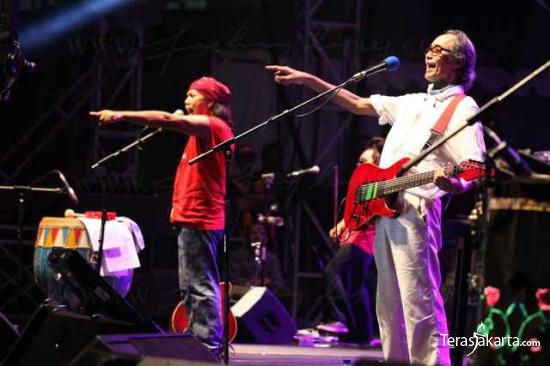 Para macan tua yang digawangi Iwan Fals, Setiawan Djody dan Sawung Jabo di Stadion Gelora Bung Karno, Jakarta,